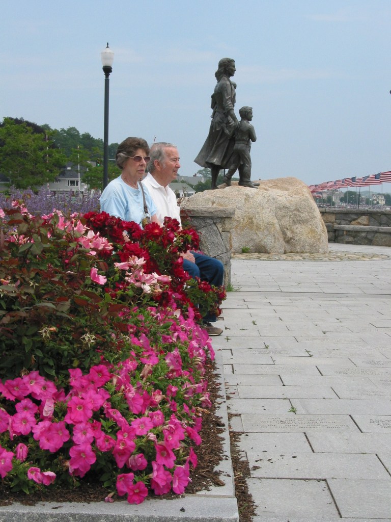 The memorial is on the boulevard waterfront in Gloucester Massachusetts, one of the oldest fishing communities in the country. The August 2001 dedication was the culmination of two years of work, and 8 years of planning. The Gloucester Fishermen’s Wives Association is a powerful voice in sustaining the fishing industry and its vital community. The bronze and granite sculpture stands twelve feet high.