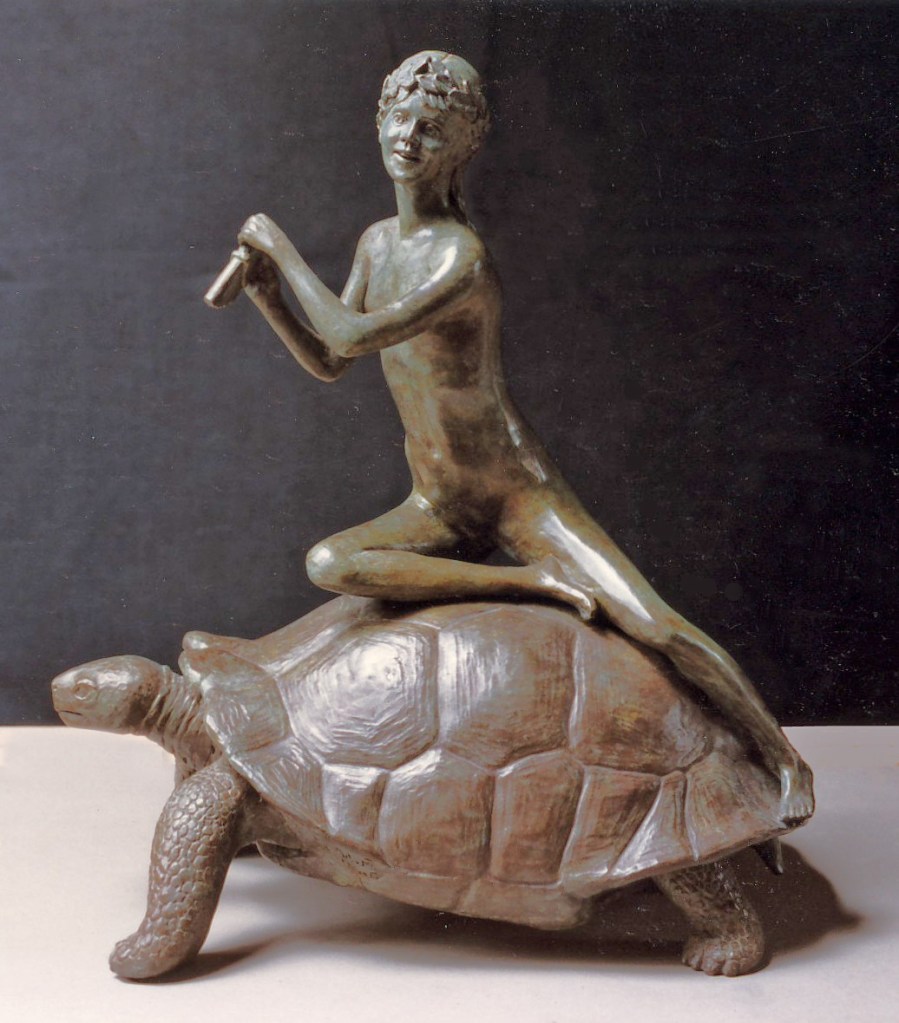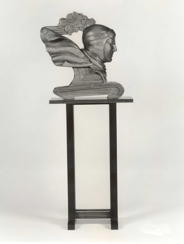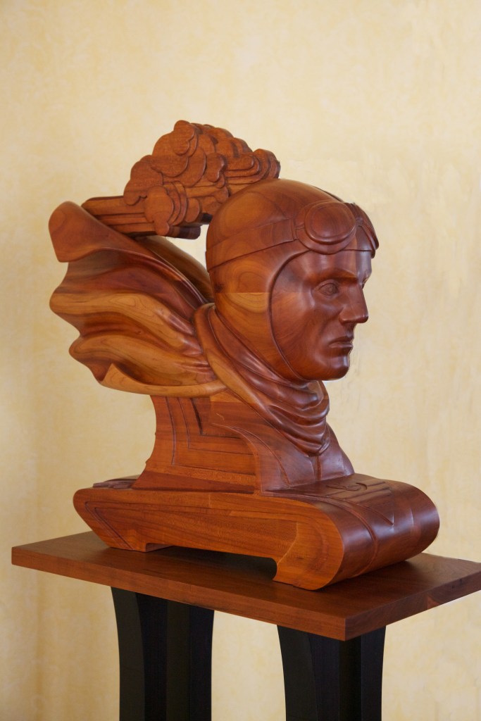 The Aviator, mahogany and polychromed poplar base, 5 feet high