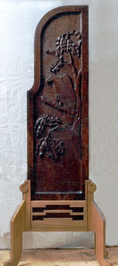 Five roundels for the C.L. Nazarian, Sedilia in the Presiding Bay, Trinity College Chapel, Hartford, CT, oak wood, 18 feet high