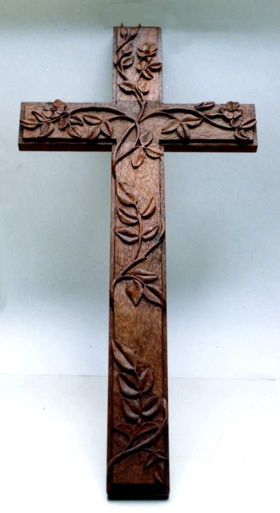 Cross, pasture roses, mahogany wood, 16 inches high